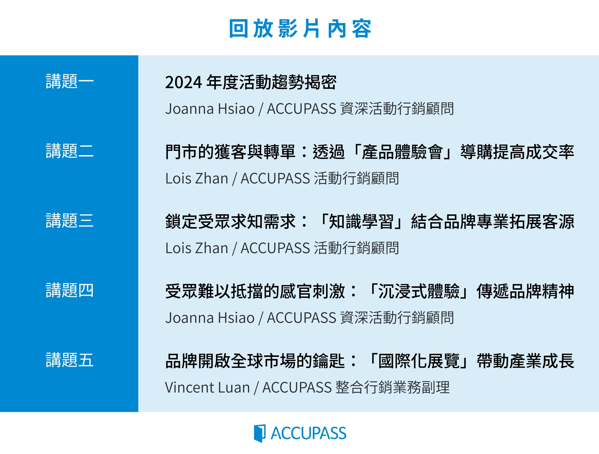 活動當天不克出席,希望觀看回放影片,請購買【2024 ACCUPASS 年度分享會】影片票