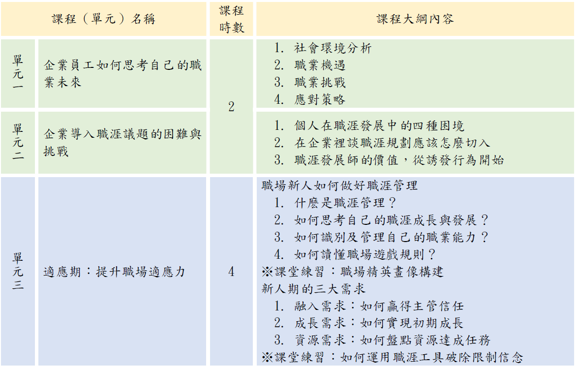 1.具備GCDF、SCPC職涯規劃師證照,有持續進修時數需求者