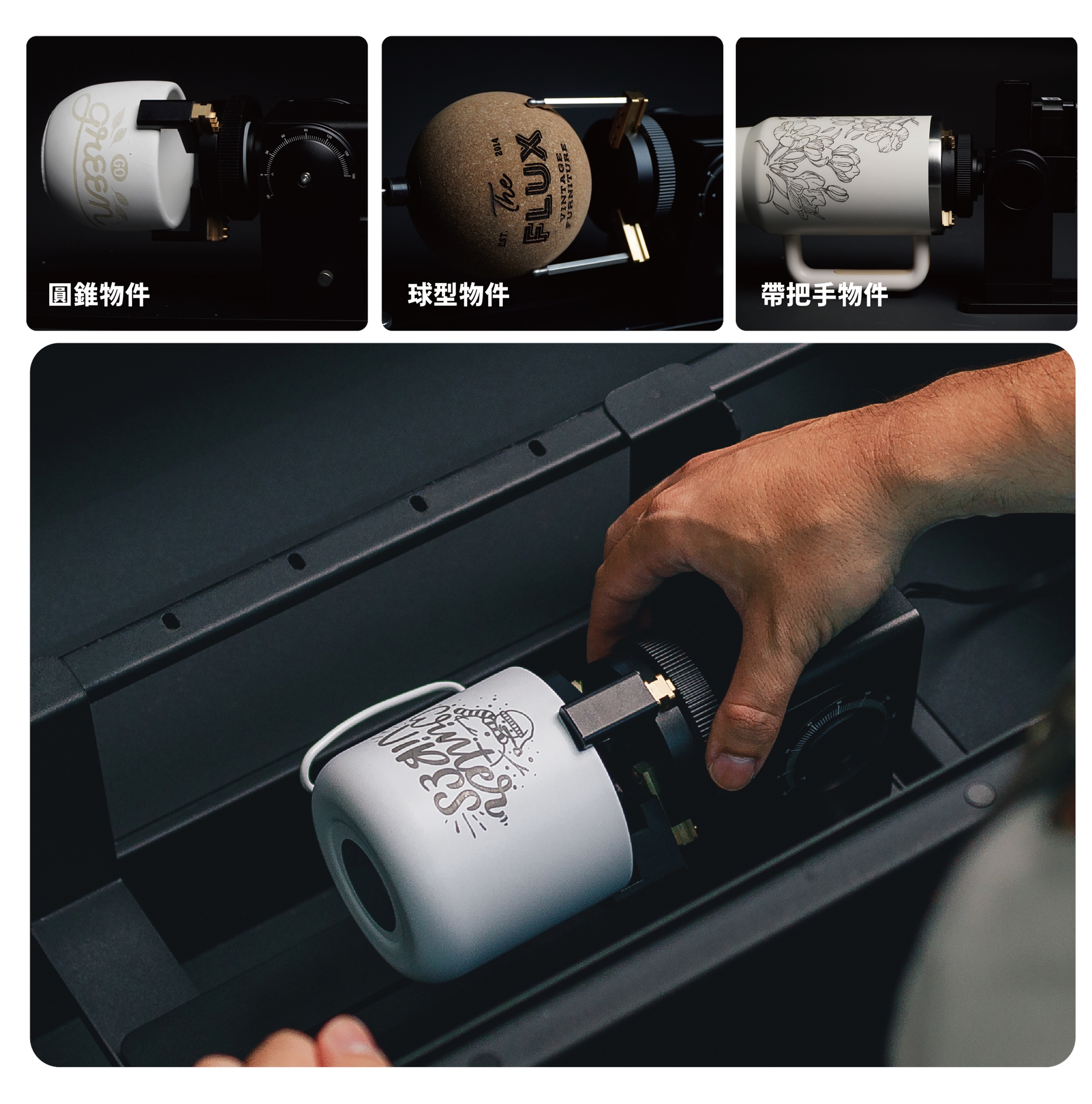 有了夾爪型旋轉軸套件,不規則物件、帶把手物件皆可進行 360° 全面加工,大幅拓展客製化可能性!