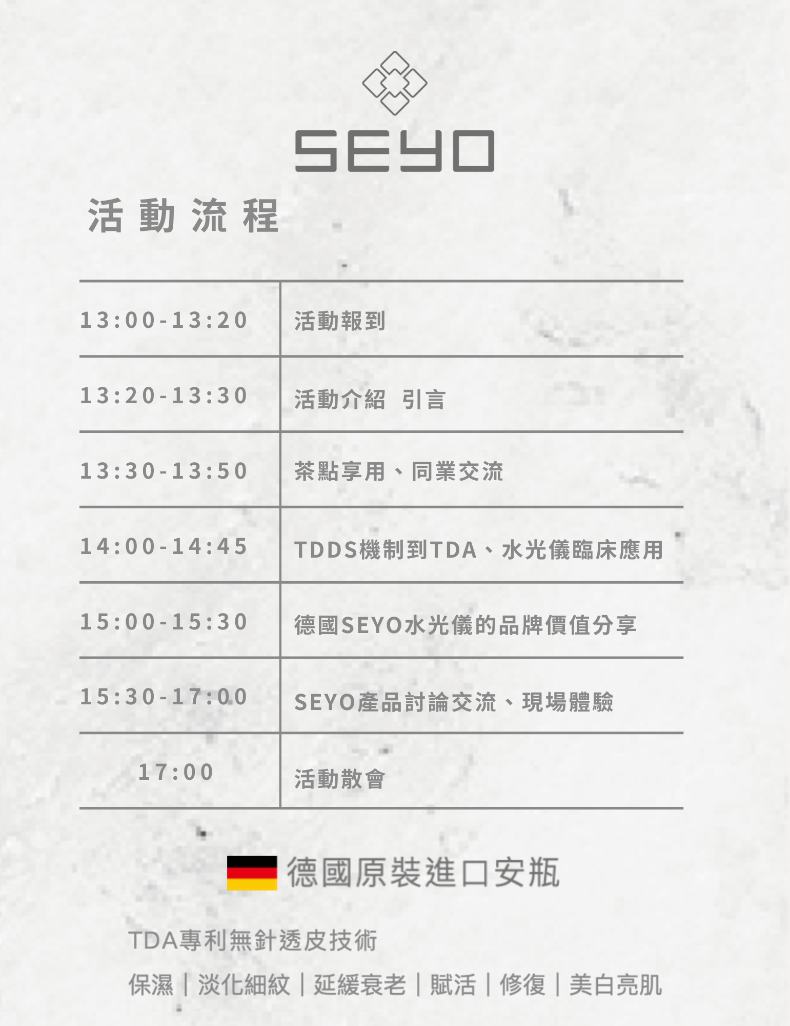 【免費活動】德國SEYO水光儀-美容儀器研討會(限美容業者參加)