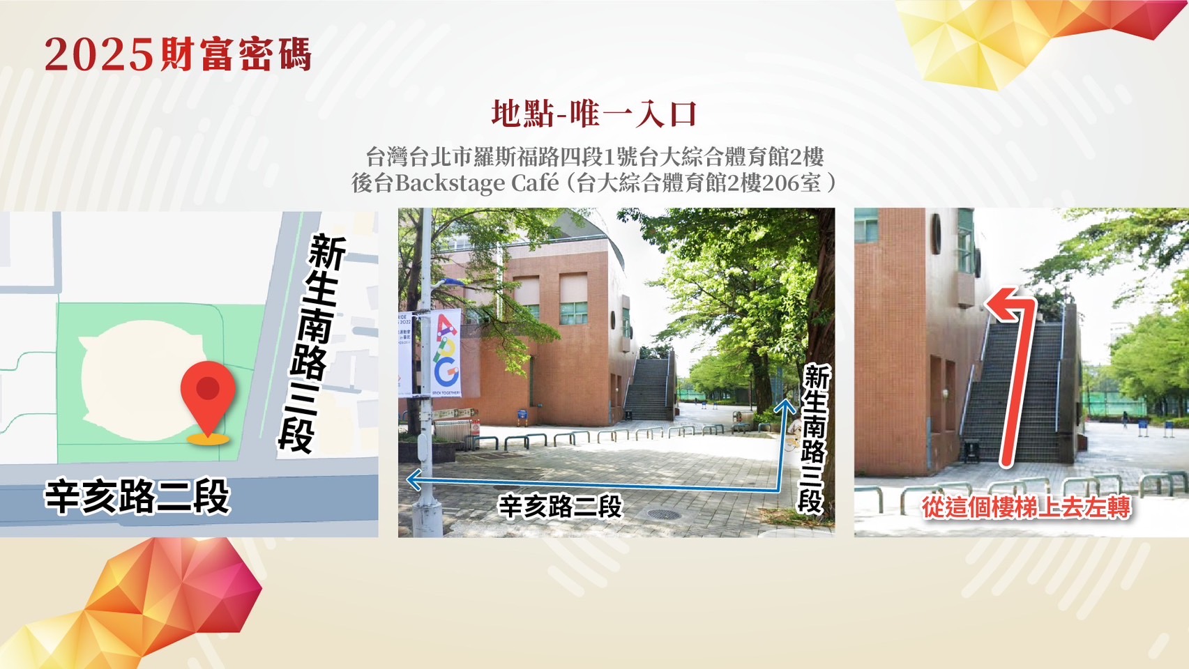 地點:台大綜合體育館2樓206室 後台Backstage Café(捷運台電大樓2號出口走10分鐘,勿走進台大校園易迷路 捷運台電大樓到後台cafe)