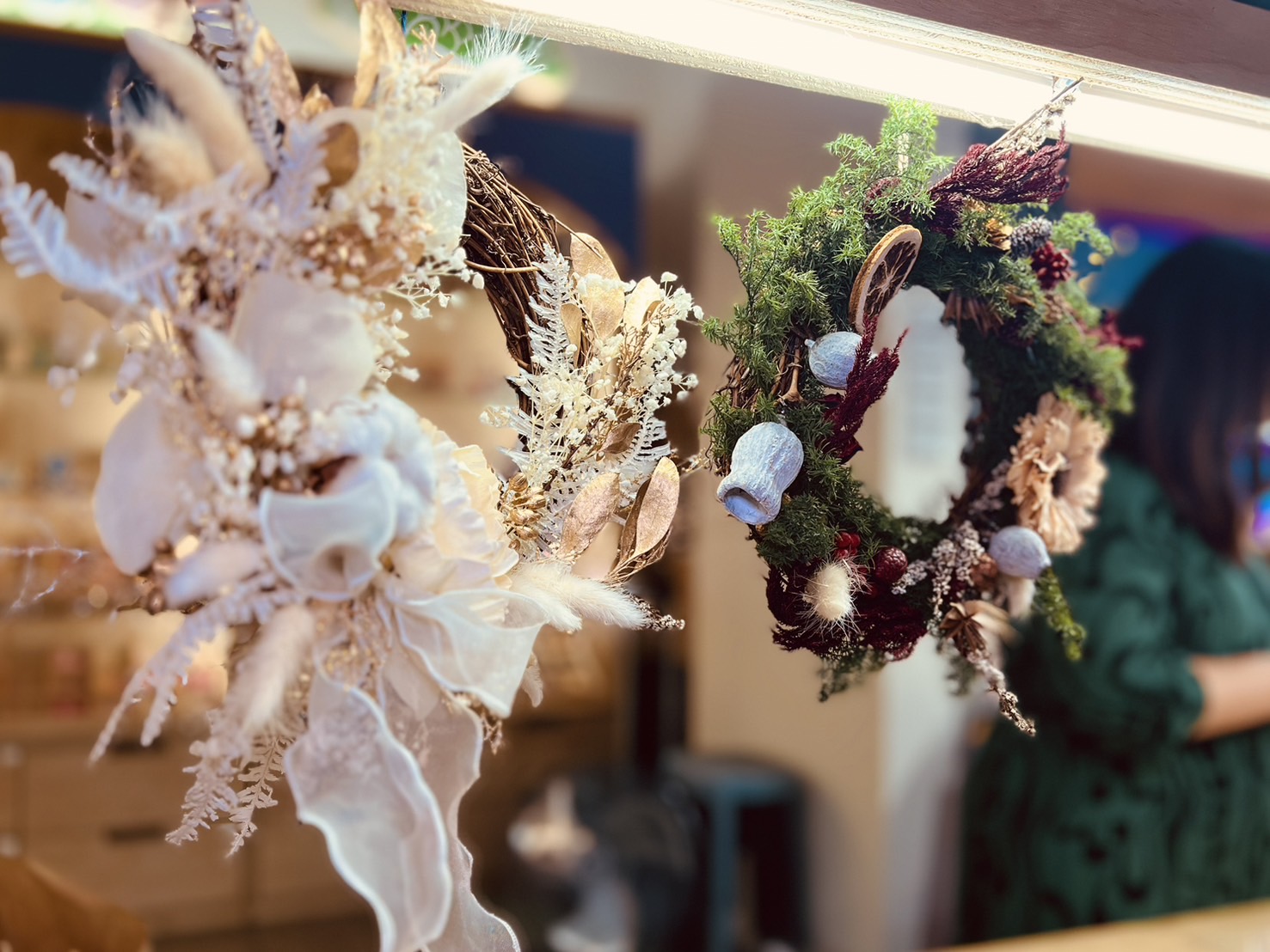 - 雙款選擇:質感聖誕永生花圈 VS 來自北國的白金花圈,滿足不同喜好的設計!