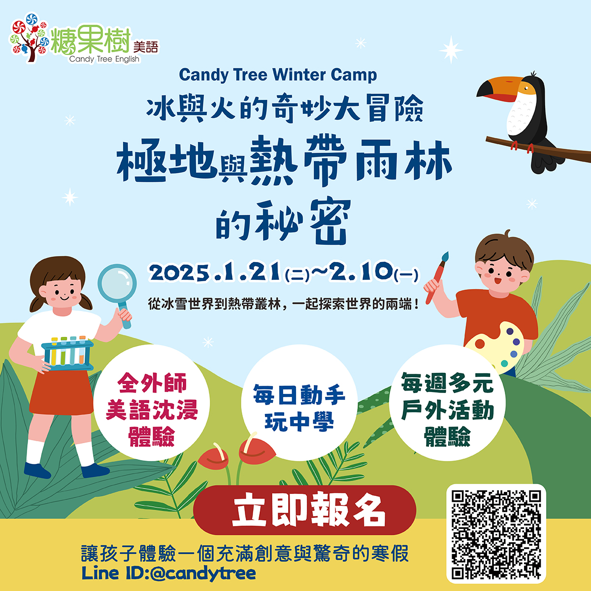 冬令營時間:2025/1/21(二)~2/10(一),歡迎報名