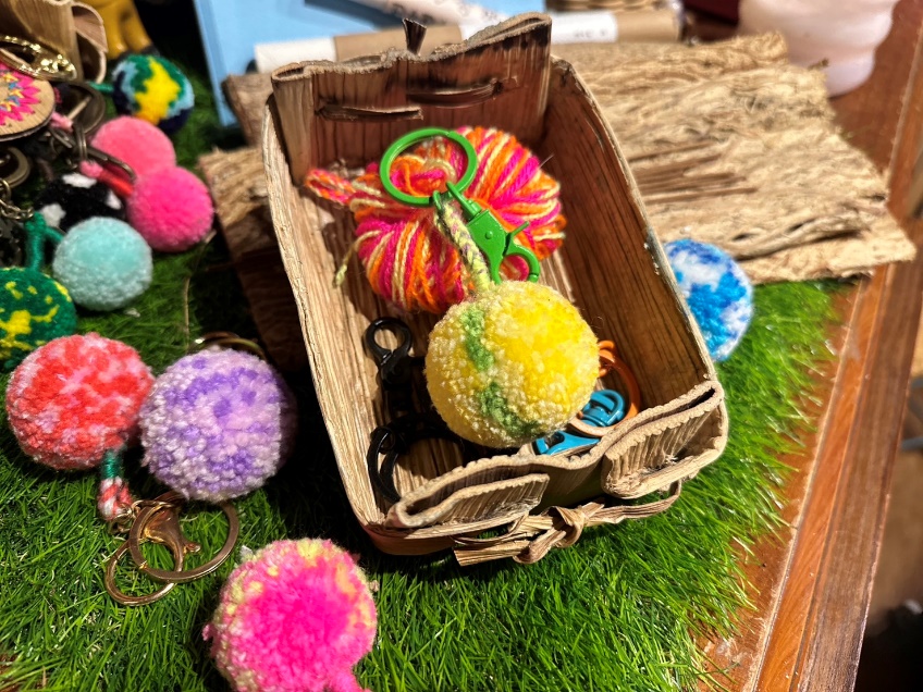 阿美族的傳統服飾都是ina (阿美語:女性尊稱泛指媽媽、阿姨)親手製作而成,一針一線都是對孩子滿滿的愛,毛球代表著祝福的美好意象,來剪一顆來自太平洋繽紛美麗的毛球,把美好的祝福帶回去吧!