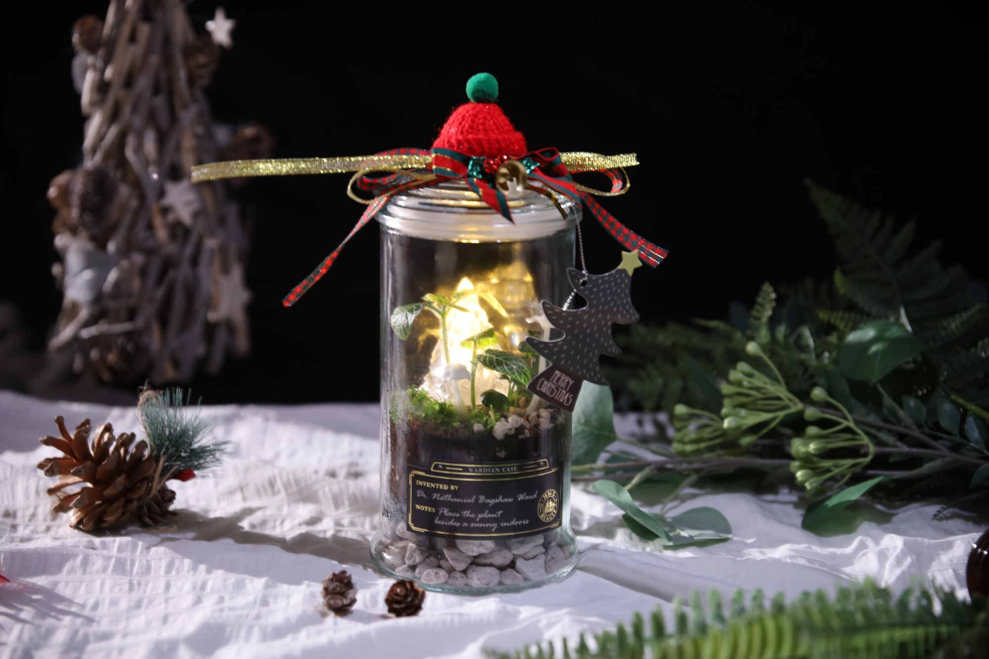 瓶蓋也會綁上聖誕限定的裝飾,讓你在今年聖誕節與生態植物瓶永存回憶!