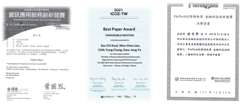 - 學術上曾獲得國內外多屆大型研討會之獎項肯定