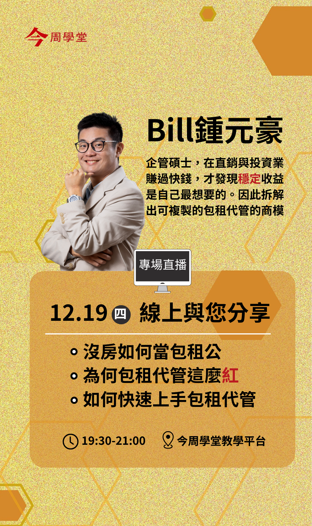 建議您可先至主辦單位《今周學堂》開通直播觀看權限 👉 點擊前往
