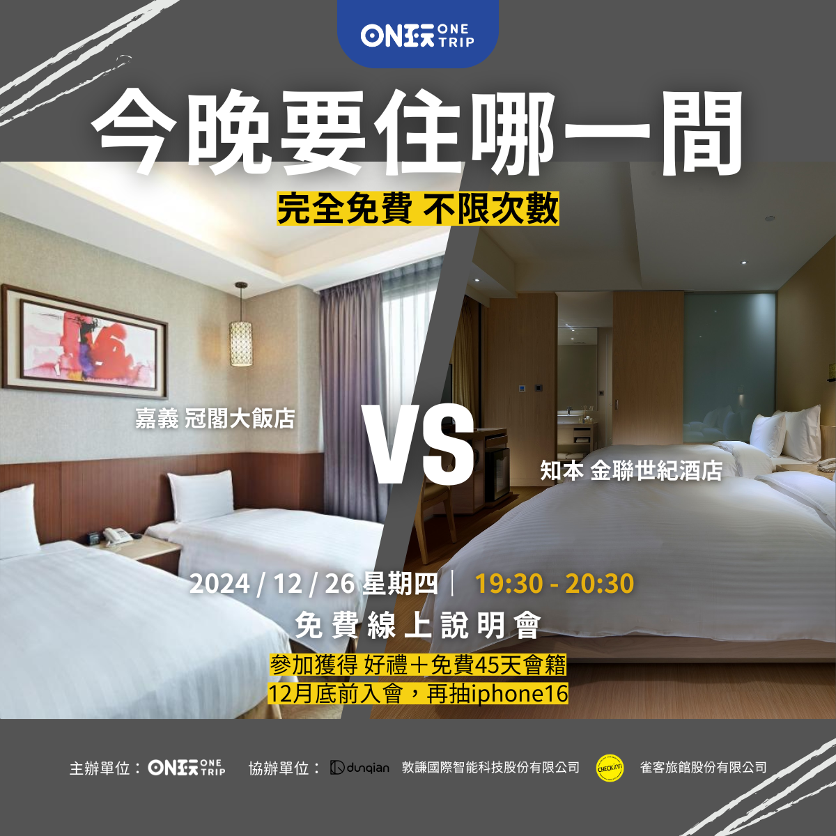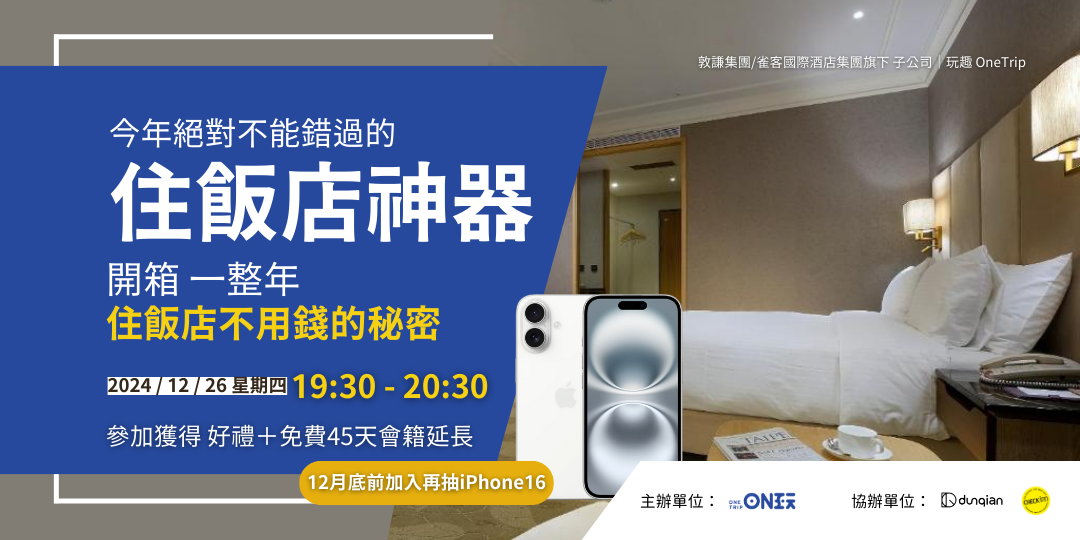 - 12月底前入會再抽iPhone16!