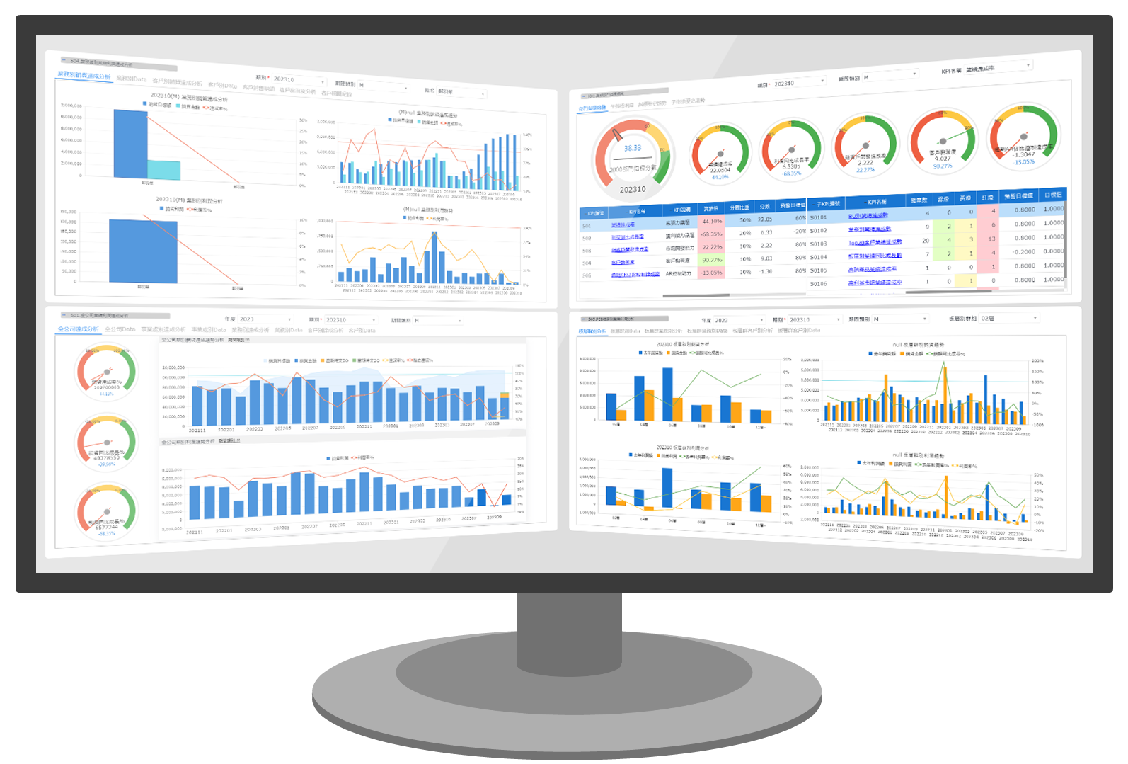 IT人員事先準備好高階資訊版面供決策者挑選頁面瀏覽,決策者可以從宏觀的視野,透過互動式元件的儀表報告和未達標的警示燈號、顏色等,讓公司管理績效一目瞭然。