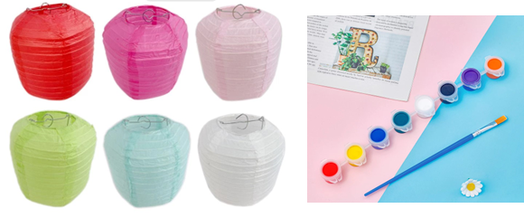 內容:提供一盞6吋素面冬瓜燈籠,一盞10吋白色圓形燈籠及顏料供親子共同彩繪