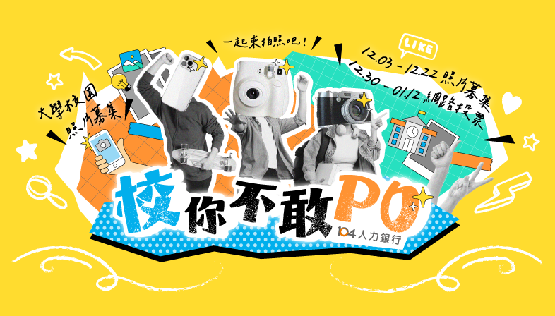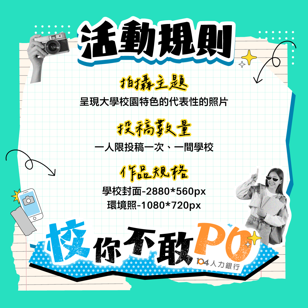 (四) 投稿即視為投稿者同意授權主辦單位將投稿照片刊登於 104 升學就業地圖學校頁。