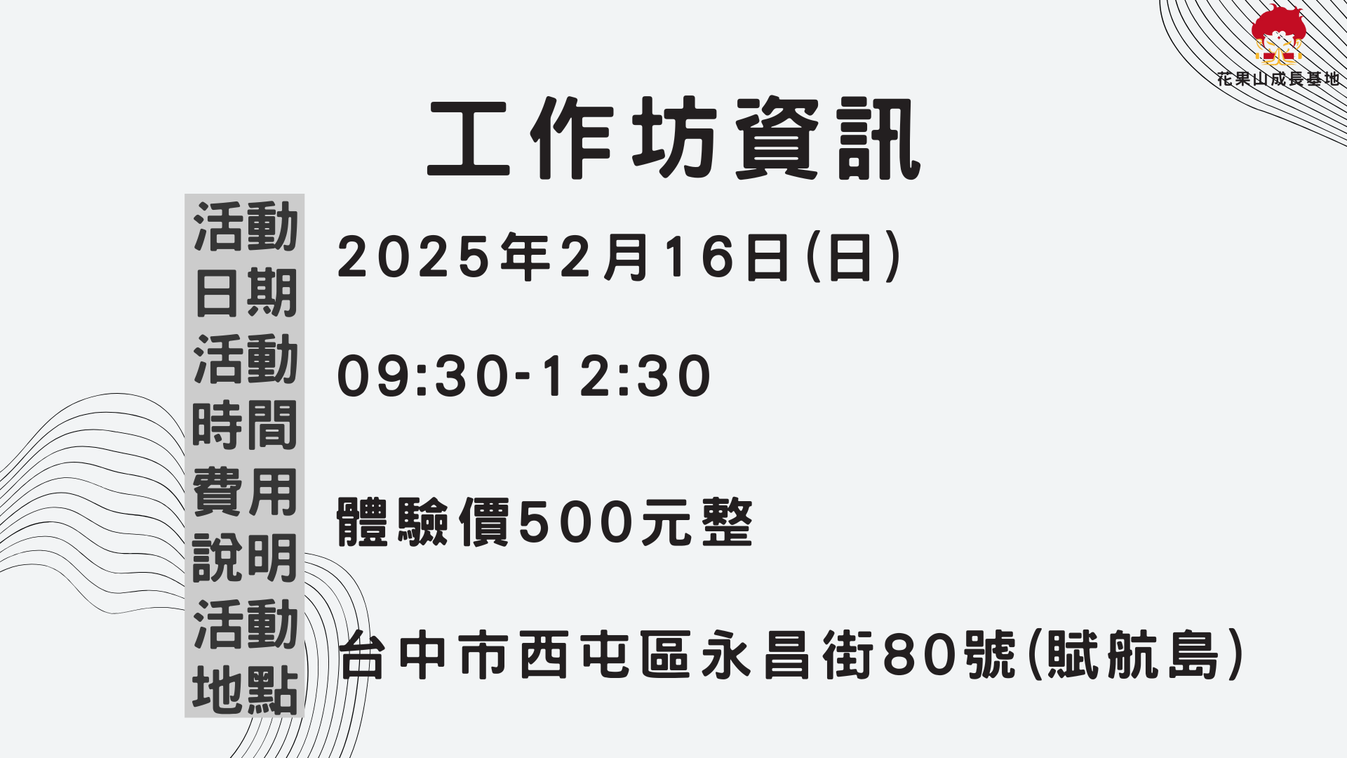 - 活動地點:賦航島(台中市西屯區永昌街80號)