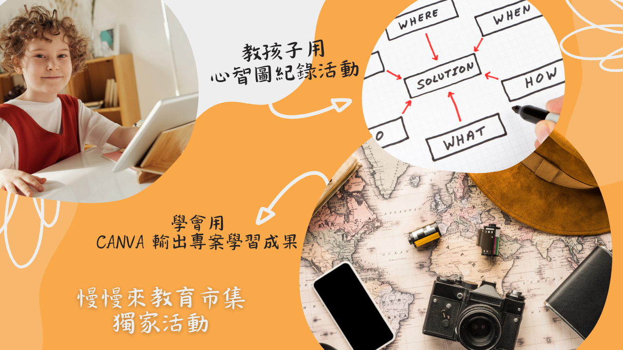 ▲ 慢慢來教育市集團隊獨家贈送活動 ,教孩子用心智圖紀錄、用Canva輸出獨一無二冬令營學習成果。