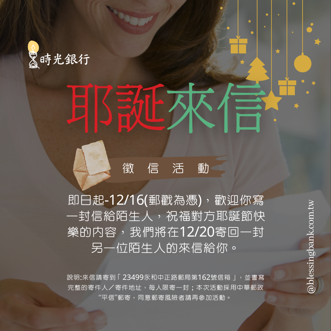 即日起至12/16(郵戳為憑),我們誠摯邀請你寫一封手寫信