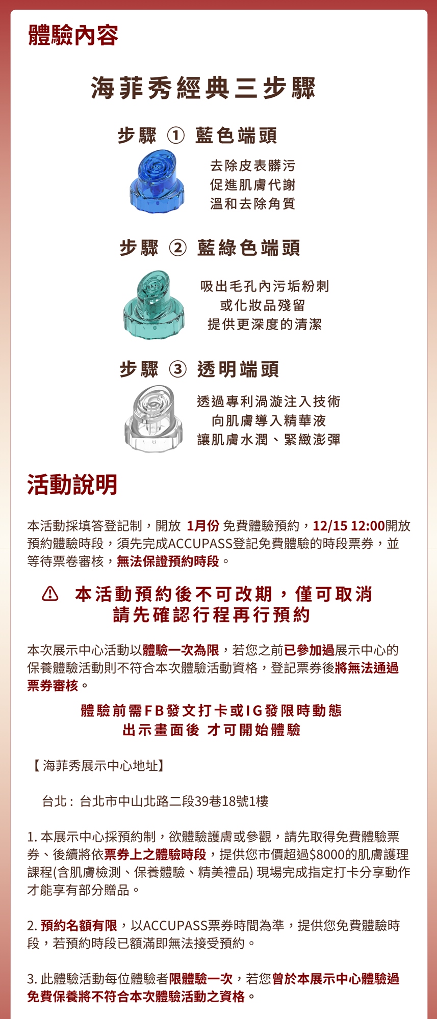 【台北-海菲秀原廠展示中心】1月份免費體驗 12/15 中午12:00開搶!