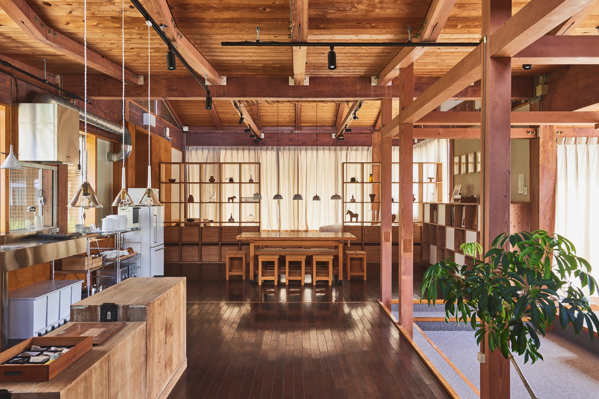 MUJI BASE KAMOGAWA則是一棟擁有百年歷史的古民家,以「和洋融合」為主題,進行翻新改造,建築內外都深具特色,自開幕以來已成為當地的地方新地標。