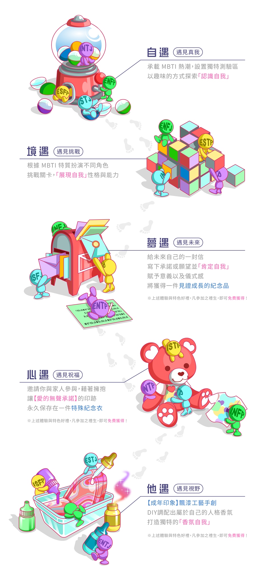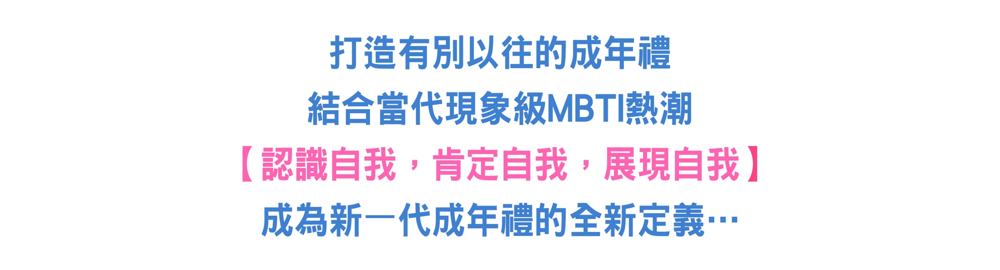 以【用 MBTI 打開屬於你的成年啟程】為創意,將成年禮的主角,聚焦於「禮生」。