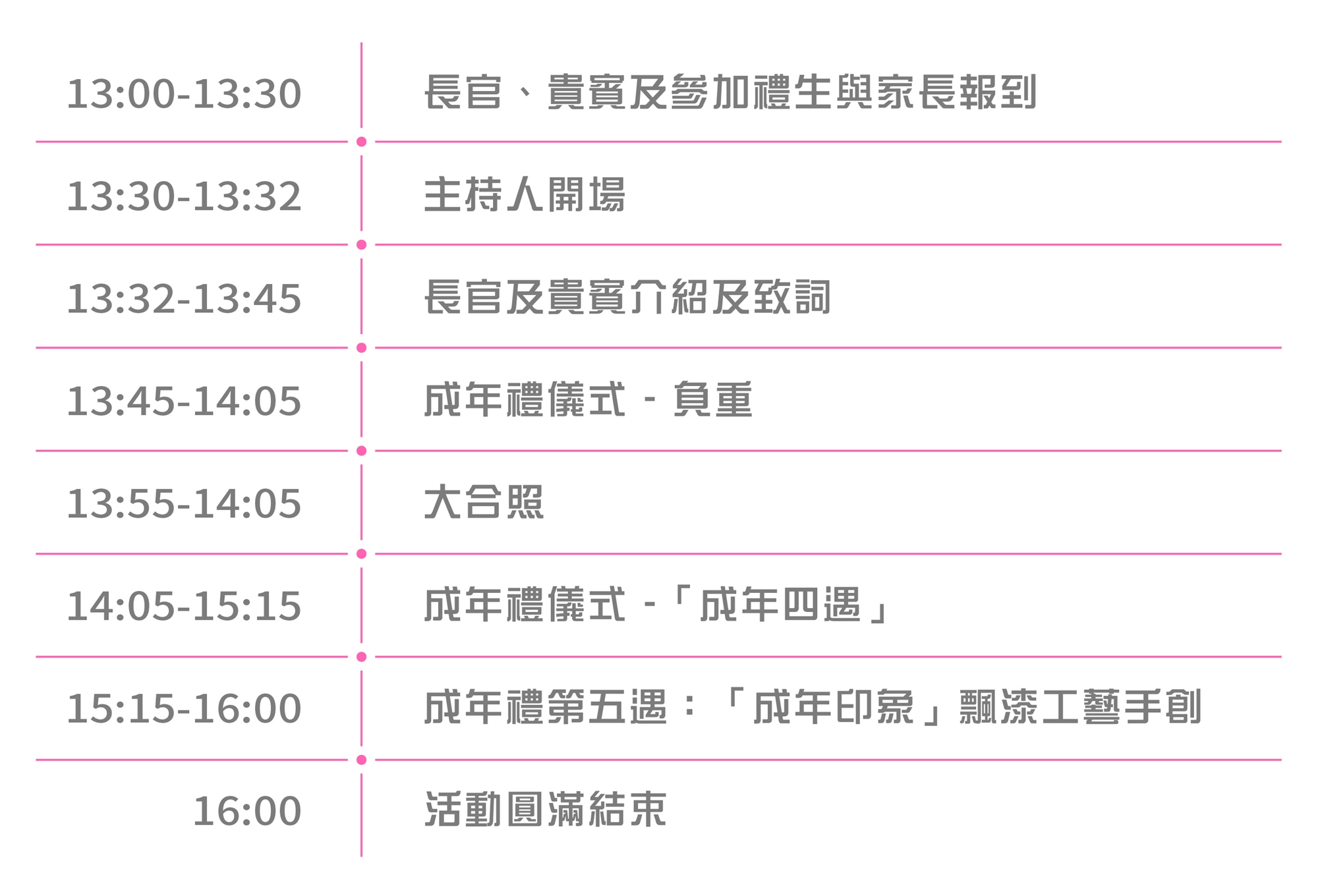 6、除參禮之家長設有專屬席位外,其餘陪同到場之家長,須統一在大眾觀禮席觀禮,亦因場地大小限制,恐無法滿足全人數需求席位,將以現場數量為主,敬請見諒。