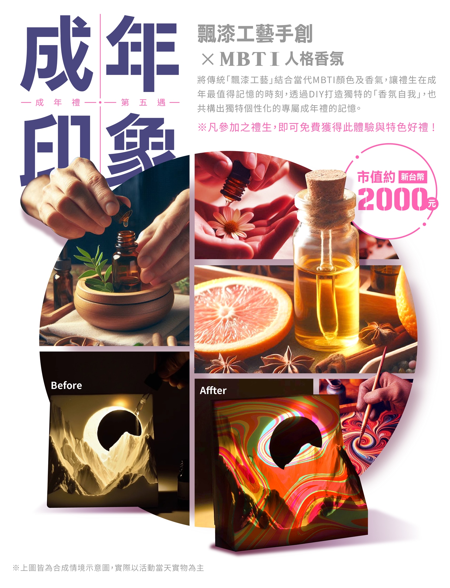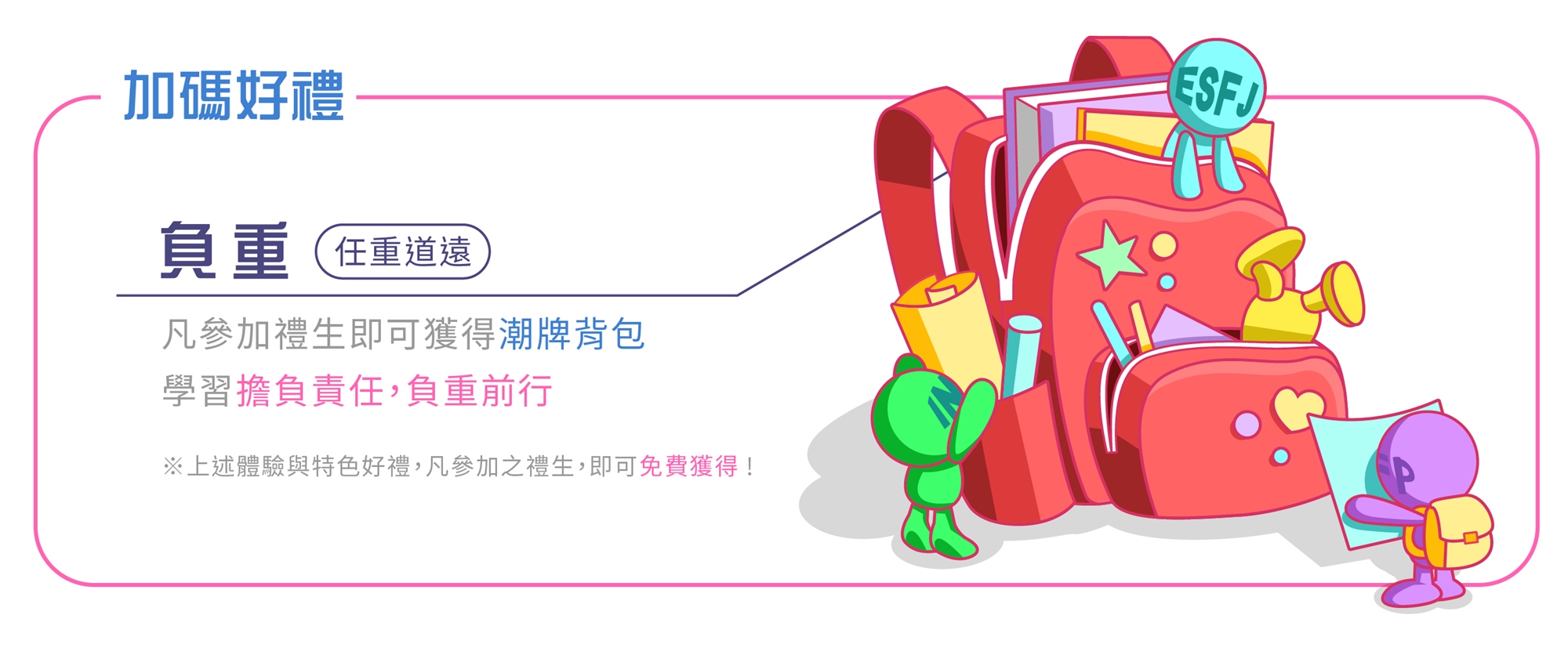 成年禮是㇐個標誌,象徵著從依賴走向自立的轉折,當 MBTI 與成年禮相遇,可以看見獨㇐無二的自己, 從內向或外向,到決策與行動的傾向,每個結果都為他們的獨特性提供㇐份解答,找到值得被看見的光芒。