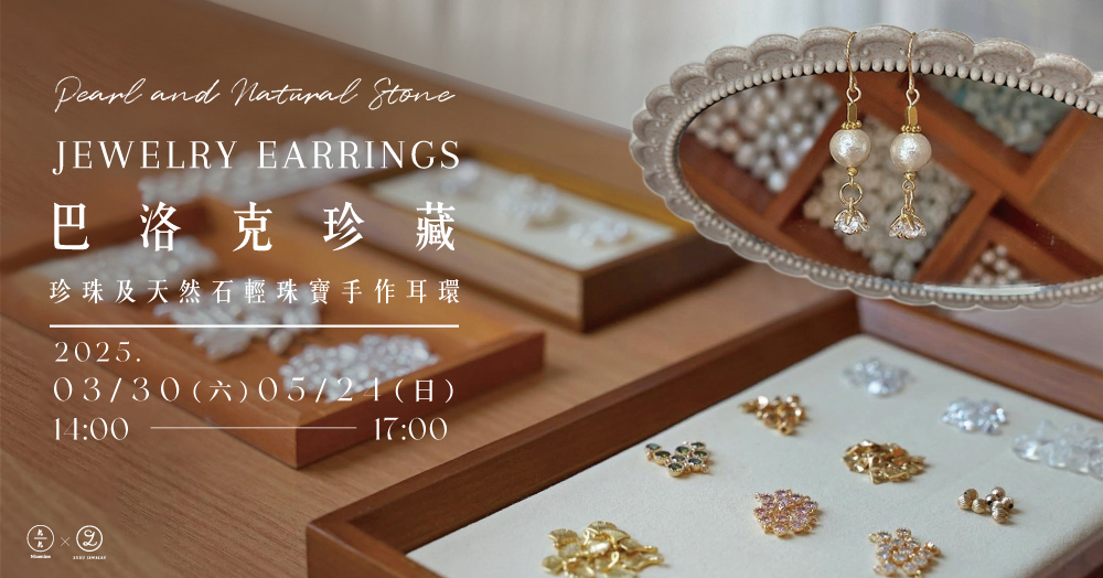 課程中會認識10種以上不同品類的天然珍珠、天然寶石、金屬材質和工具介紹,能夠自由選擇和搭配,製作出獨一無二的耳飾。