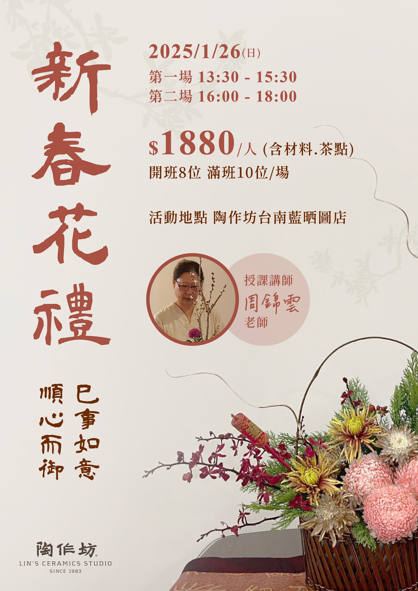 💰 活動費用:1,880元/人(含竹籃、花材、茶、茶點、場地費及講師費)