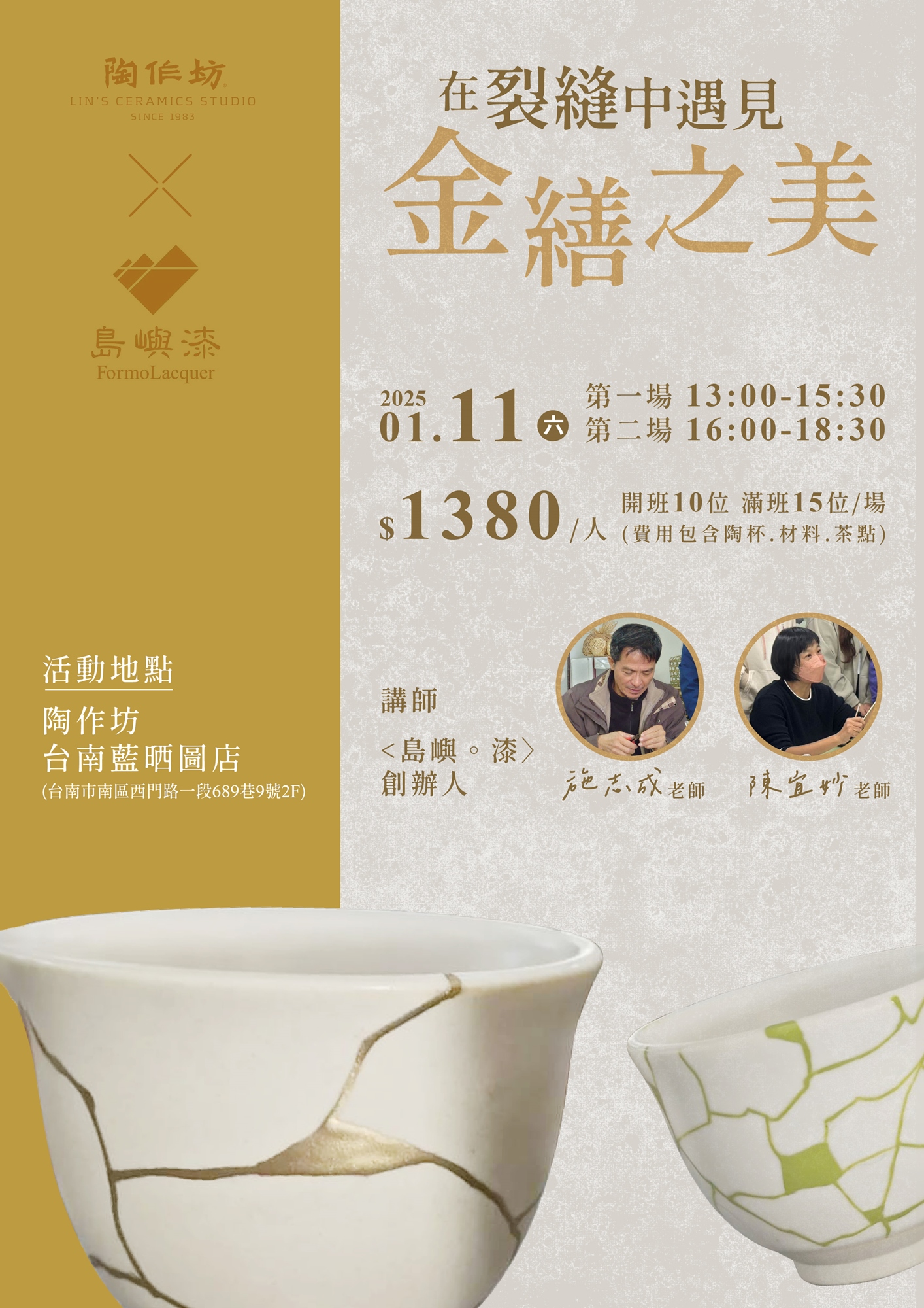 💰 活動費用:1,380元/人(含陶杯、金繕材料、茶、茶點、場地費及講師費)