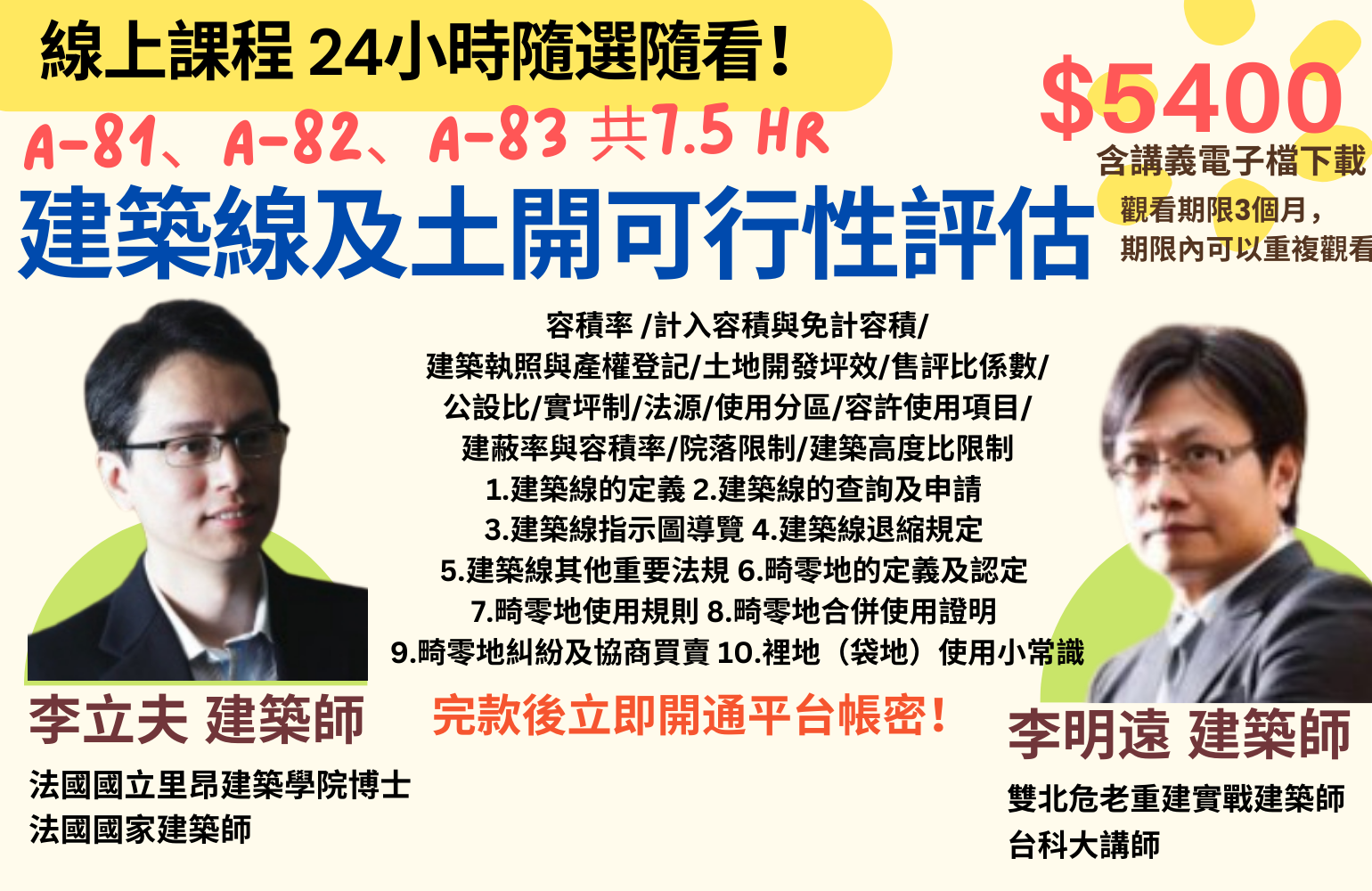 【線上課程】建築線與土地開發可行性評估,線上價5400元!完款當天立即開通!