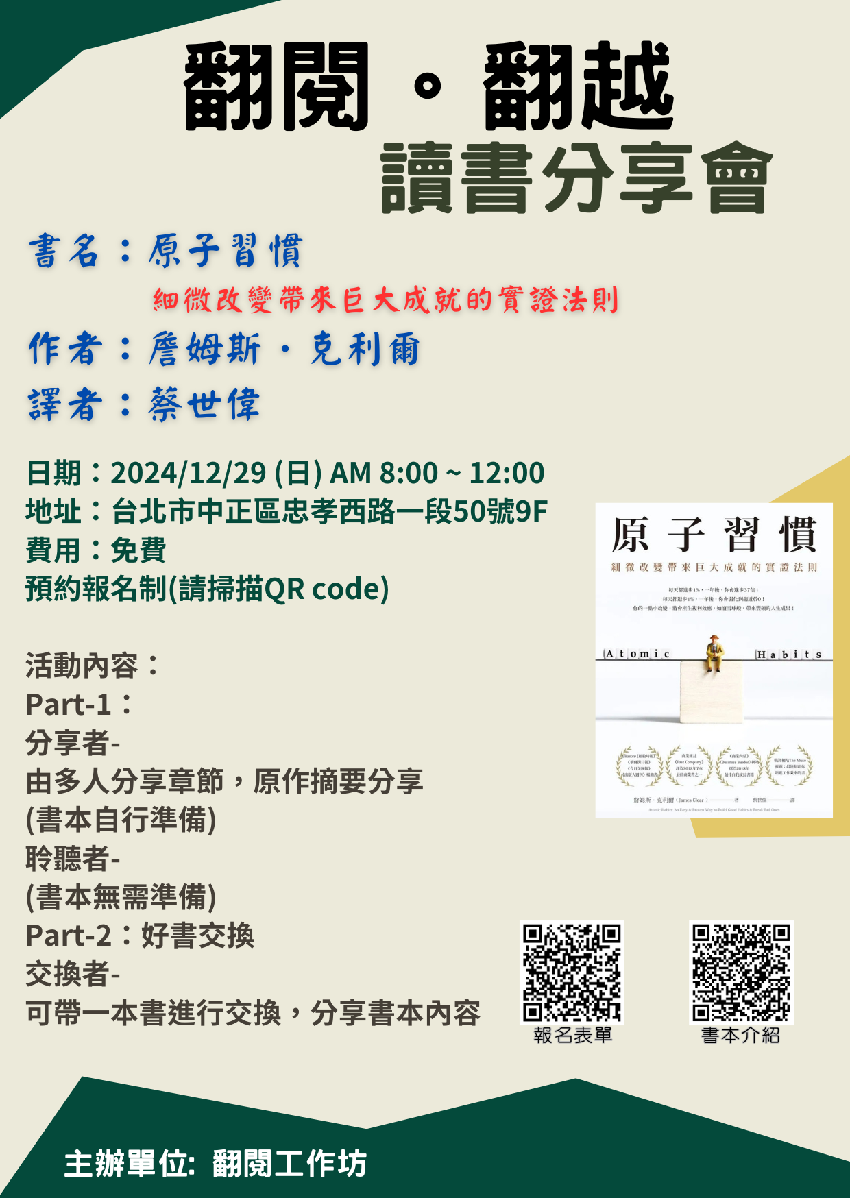 1.參加者(1人~分享者)均分章節,原作摘要分享(書本請自行準備)