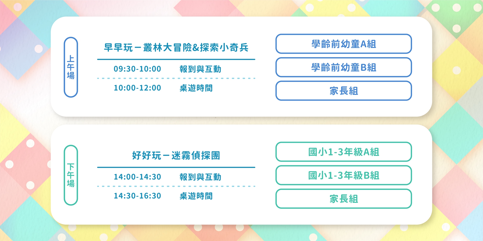 *請依小朋友實際年齡報名梯次,才能讓小朋友獲得最合適的身心收穫喔!