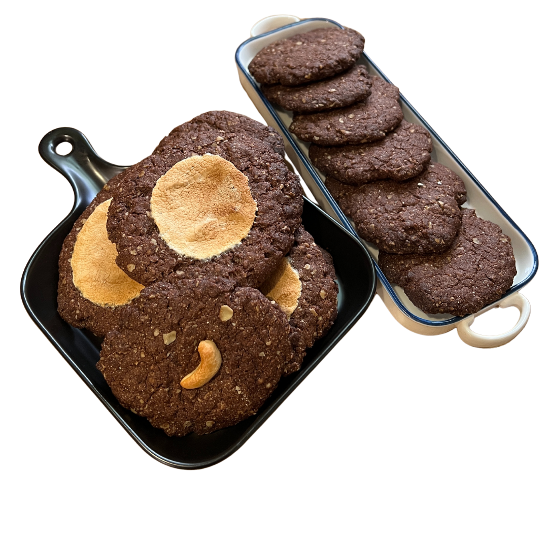 1.巧克力軍團餅乾 :巧克力、燕麥片、杏仁粉、奶油、糖、小蘇打粉、低筋麵粉。