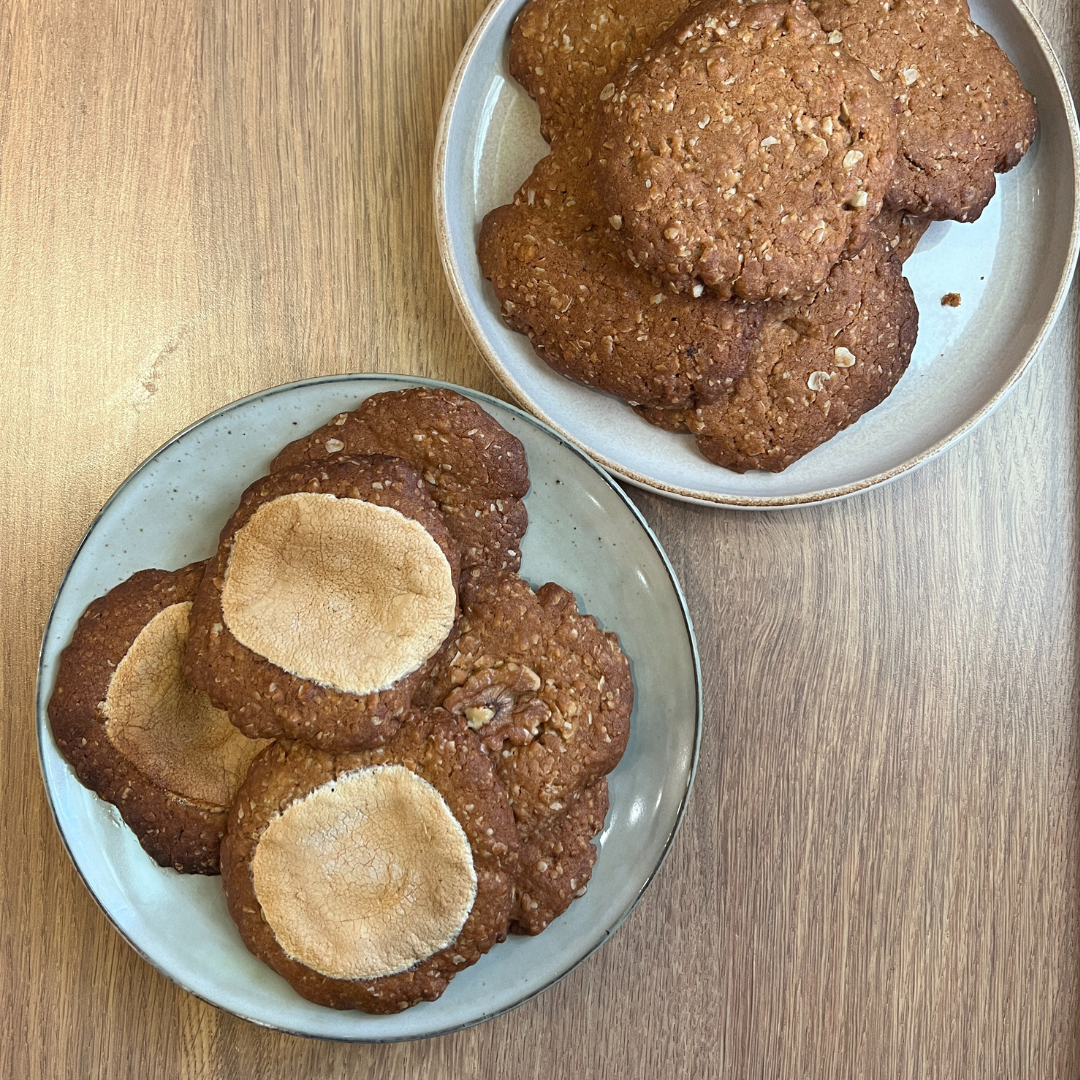 2.傳統軍團餅乾:燕麥片、椰子粉、奶油、糖、小蘇打粉、低筋麵粉。
