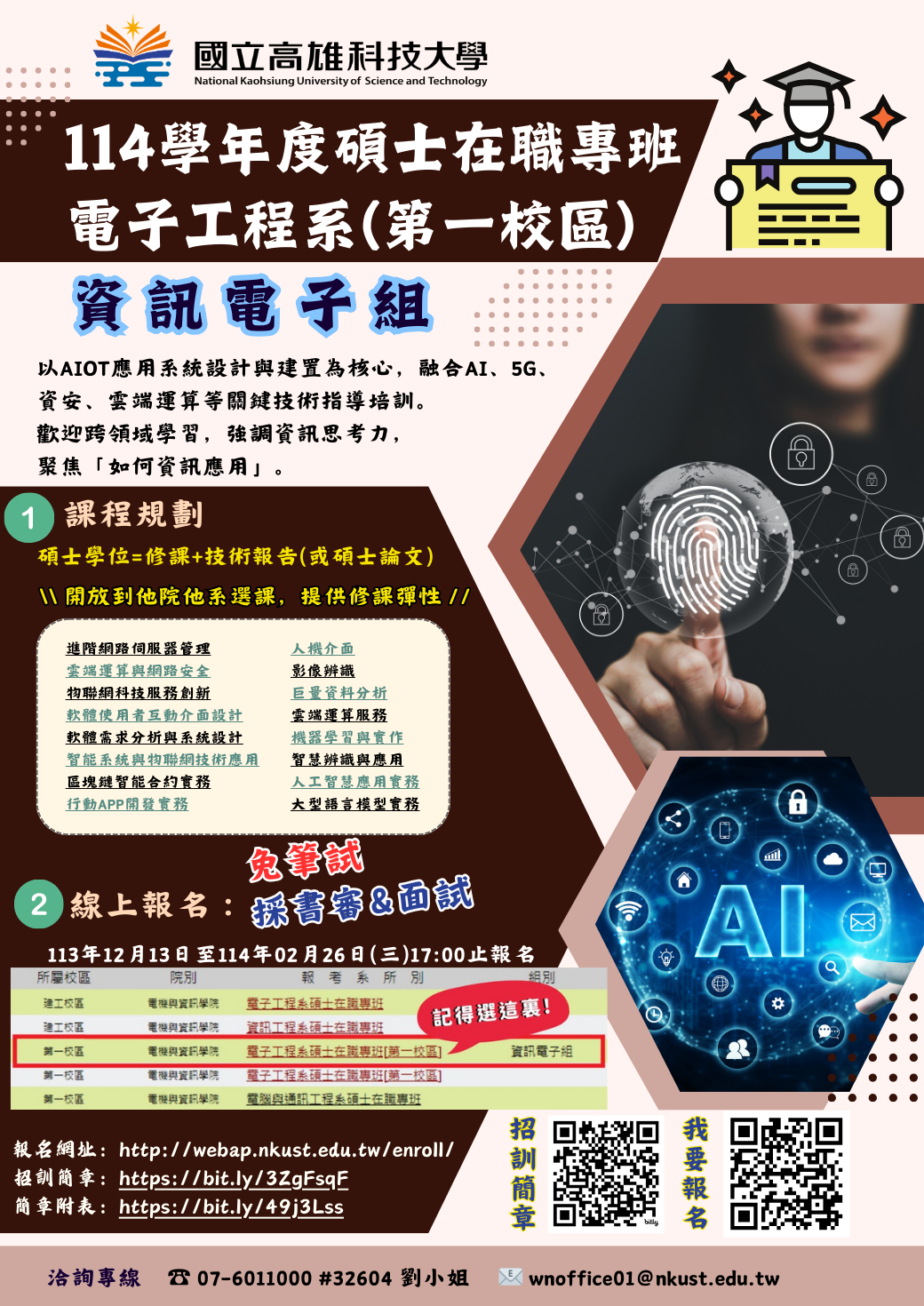 #高科大 #碩士在職專班 #電子系 #資訊電子 #AI #物聯網 #國立高雄科技大學