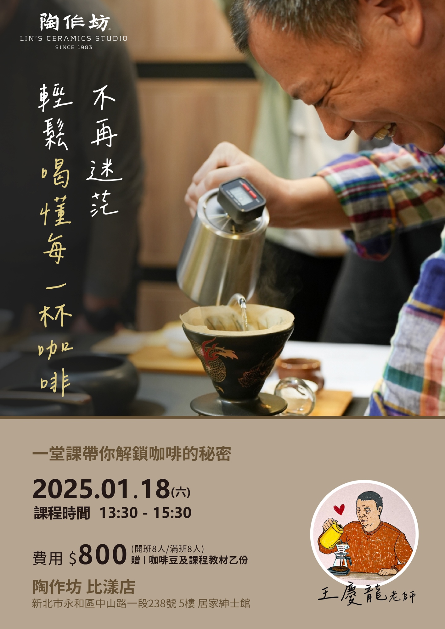 💰 活動費用:800元/人(含現場咖啡、小點心、場地費及講師費,並贈咖啡豆乙包及課程教材乙份)
