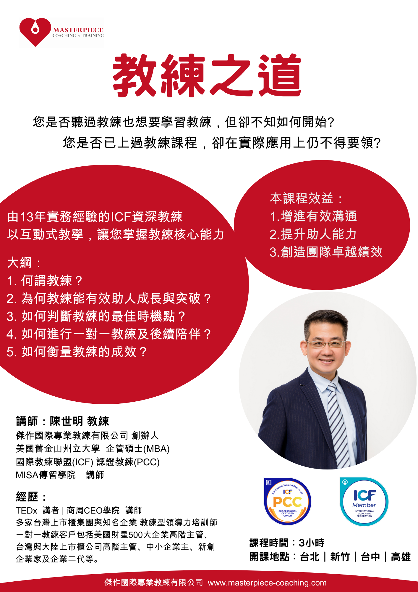 本課程將以互動的教學方式,讓您掌握教練的核心能力