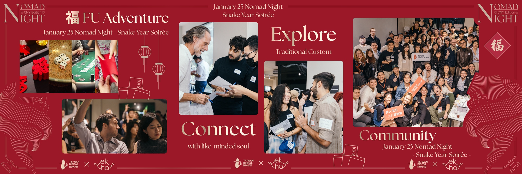 在這個特別的夜晚,我們將這個繁榮的象徵帶到現場——您將在參與傳統遊戲與體驗中感受到「福」的魅力!不僅能體驗正宗的台灣過年習俗,更可以認識來自全球各地的數位遊牧者和專業人士。