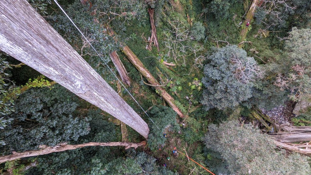 「找樹的人」團隊在2020年發現79.1公尺高的桃山神木與其周遭原始森林巨,隨著碳匯、碳權的議題逐漸引起大家注意,2024年率領36人公民科學家下切1400公尺的原始森林抵達桃山神木谷。眾人花八天七夜的時間,在午後雷雨轟轟的深山裡,共調查195棵巨木胸徑、347棵林下小喬木,80棵枯立倒木等,測得總碳儲存量每公頃逾2,000噸,是世界級的千年森林。