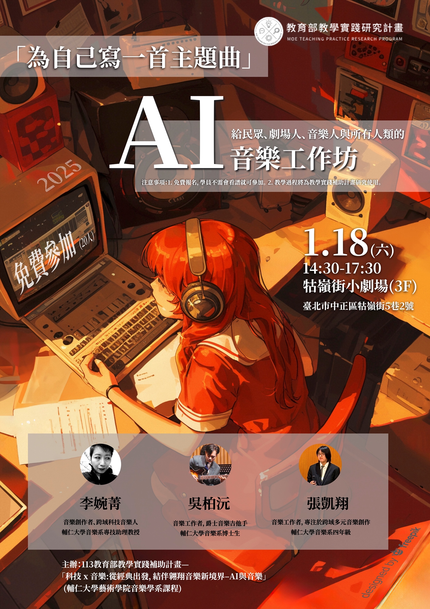 🎟 費用:免費參加!(課程為教育部教學實踐研究補助計畫,過程將提供研究使用,但內容完全匿名處理,無需擔心隱私問題!)