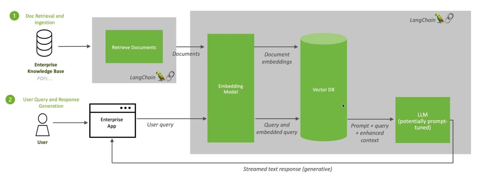 RAG將LLM與嵌入模型(Embedding Model)和向量資料庫(Vector DB)結合 (圖片來源)