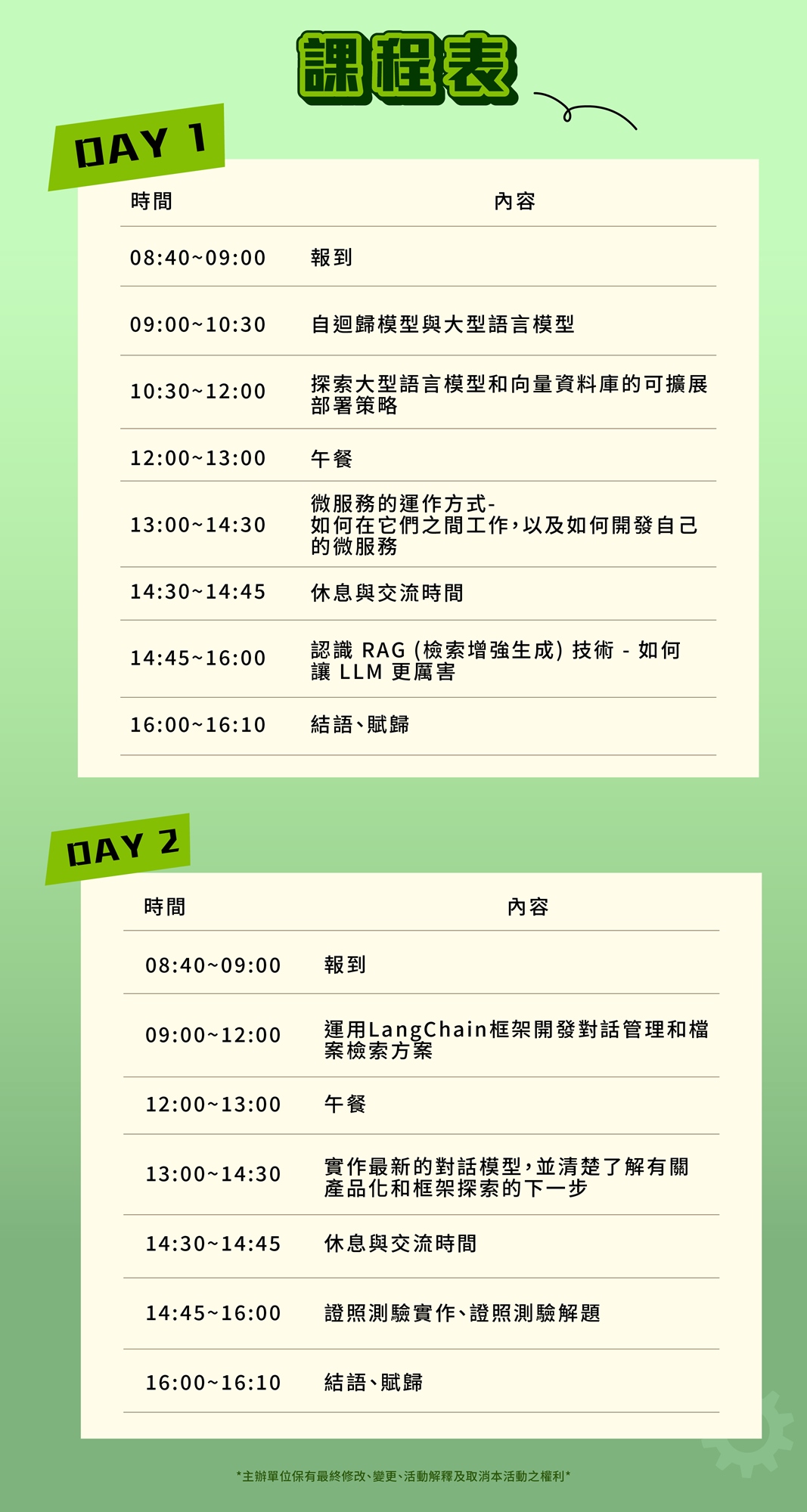 - 主辦單位保留是否受理報名、解釋活動與變更活動的一切權利。
