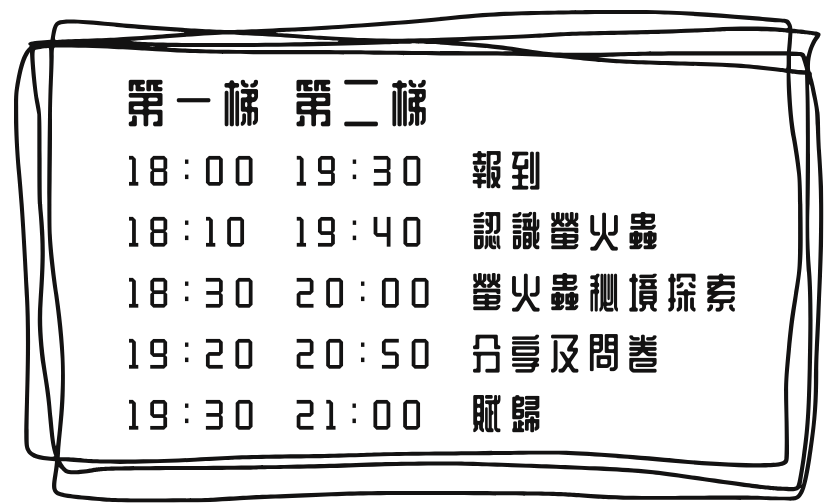 ➐ 活動全程為賞螢導覽,途中請勿拍攝螢火蟲避免延誤隊伍行進時間及自身安全性。