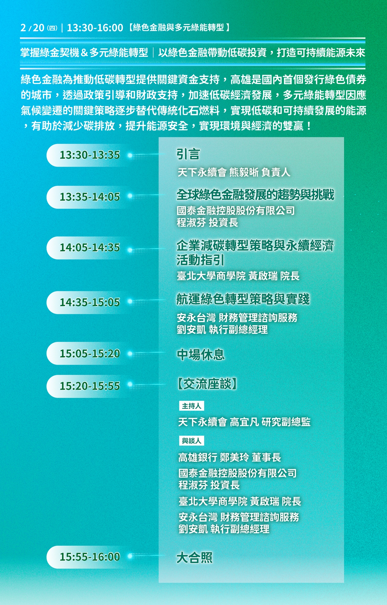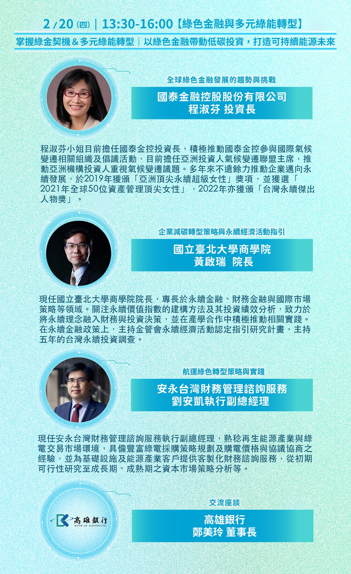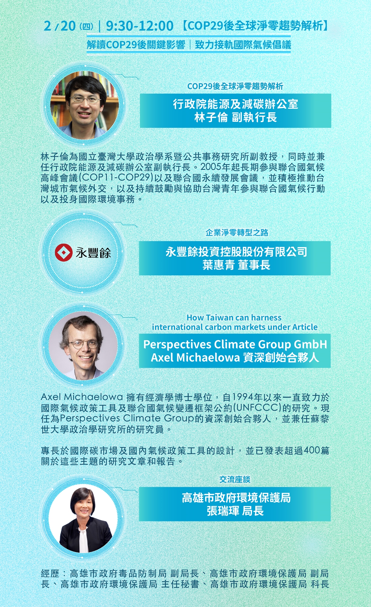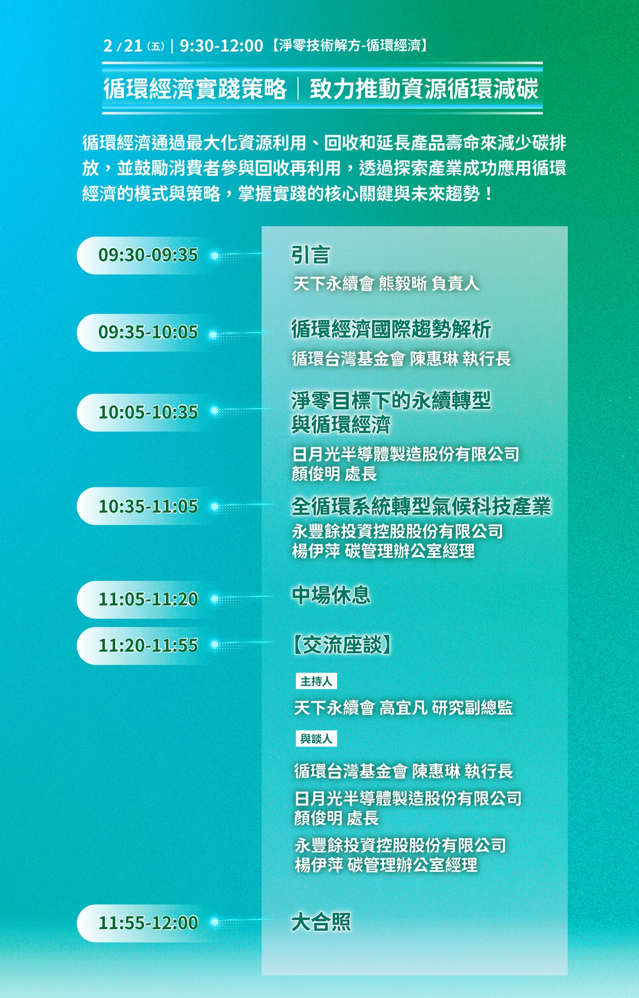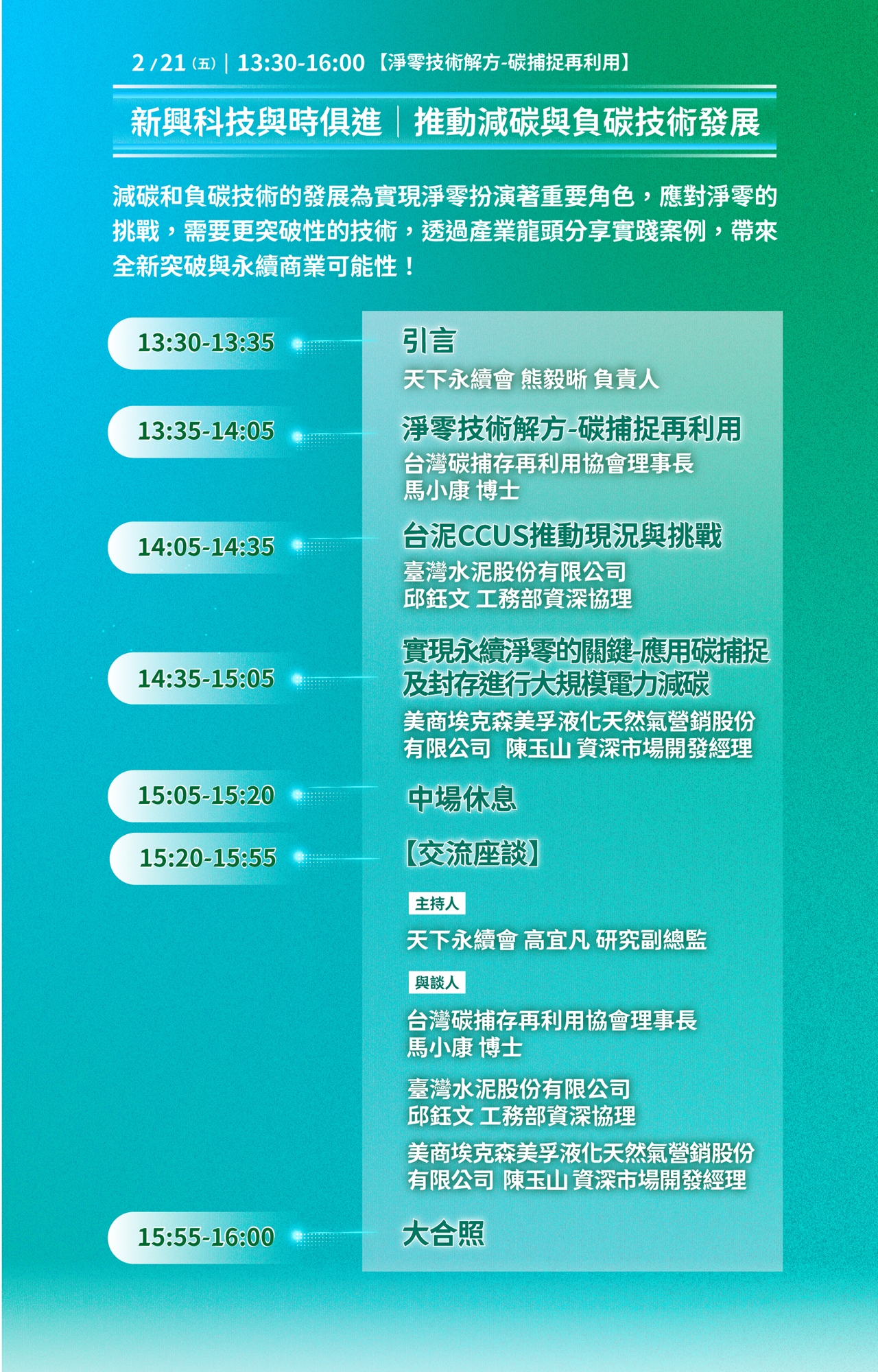 無論您是企業決策者、永續發展實踐者,或對環境永續懷抱熱忱的專業人士,這些論壇都將為您開啟嶄新視野,協助您掌握淨零商機,邀您一同探索淨零轉型之路,開創永續未來!