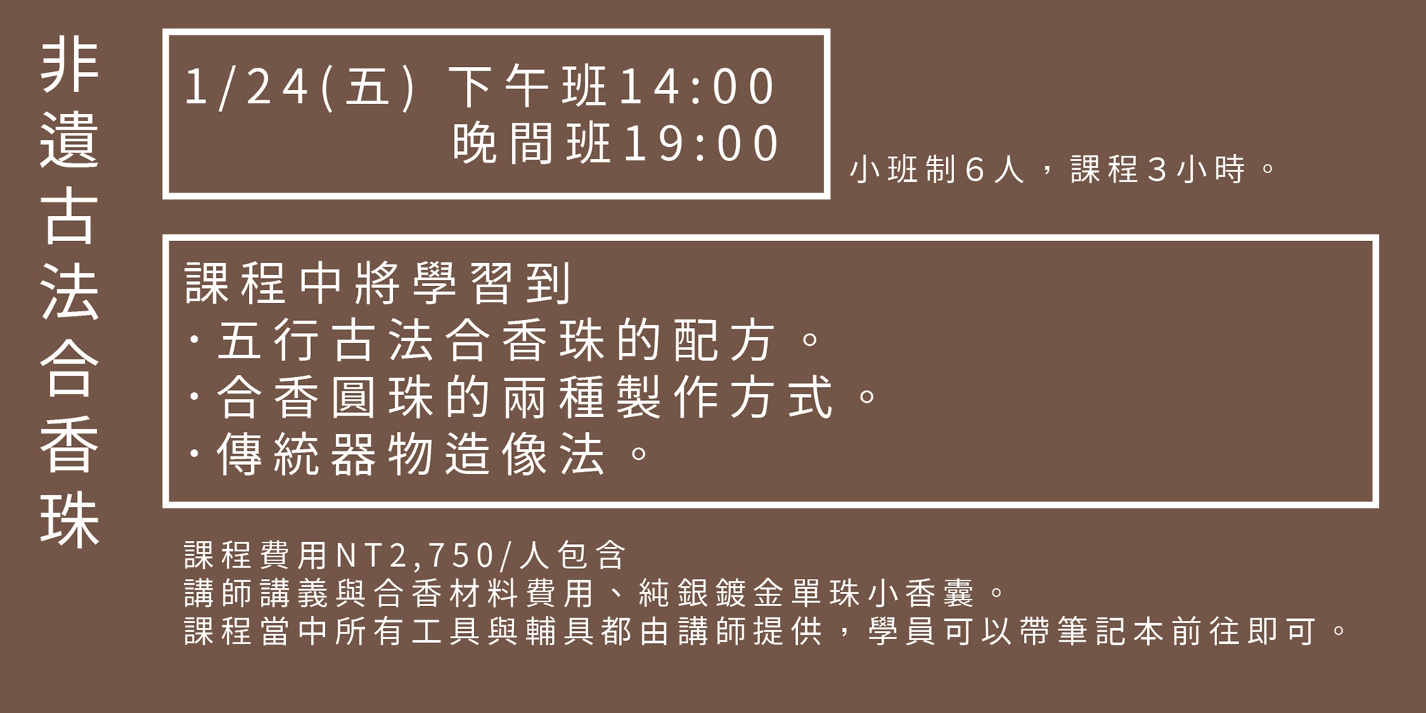 .含講師費用、講義與合香材料,特別贈送純銀花絲香囊一件。