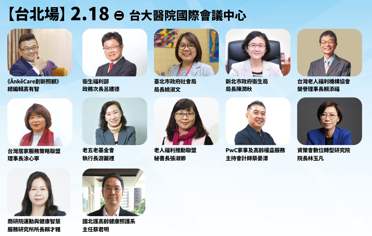 為因應此變動,特邀集匯聚全台產官學研界大師級講師,以不同面向的深入剖析,探尋創新經營模式,讓照顧產業的夥伴們得以站在巨人的肩膀,與頂尖專家零距離接觸,聚焦深入探討2024年的關鍵變化與2025年的照顧發展趨勢,汲取最新照顧產業新知與洞見。