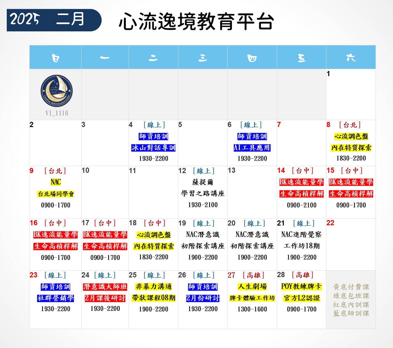 ❤心流逸境教育平台-近期課程表❤