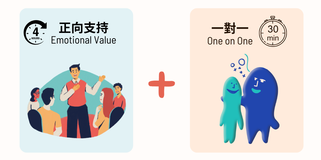 除了進行4小時課程以外,另為加贈每人一對一30分鐘教練輔導,