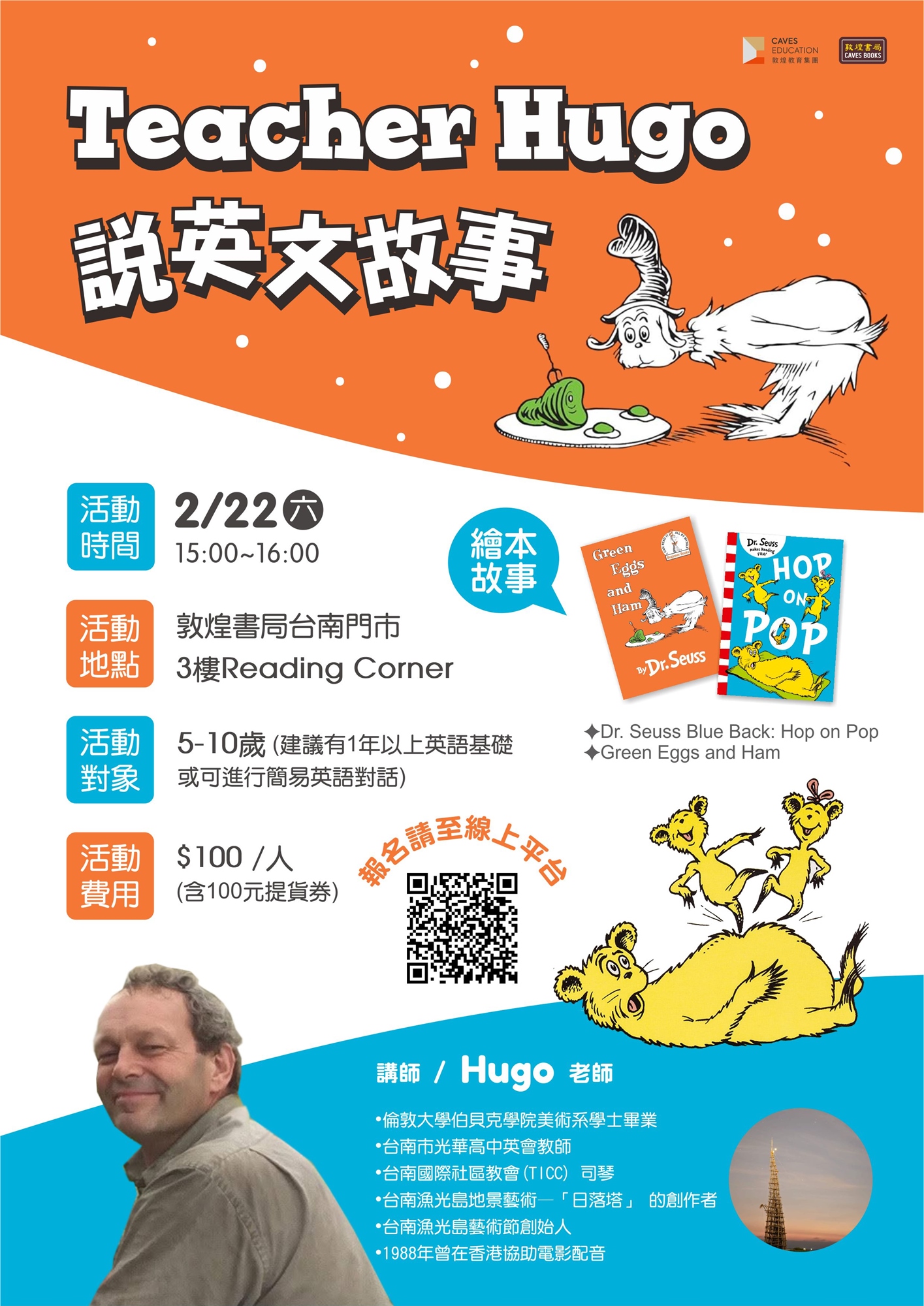 ★ 此次特邀具有豐富說故事經驗的外師—Hugo Teacher 為大家帶來🎩美國童書界的莎士比亞 Dr. Seuss 系列繪本,點亮孩子閱讀的想像力 🌟