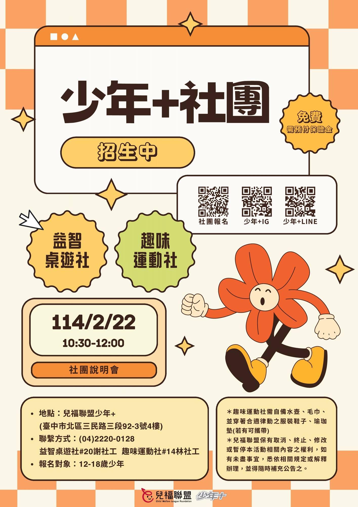 【兒福聯盟少年+ 2025年 第一屆免費社團開始招生啦👏】