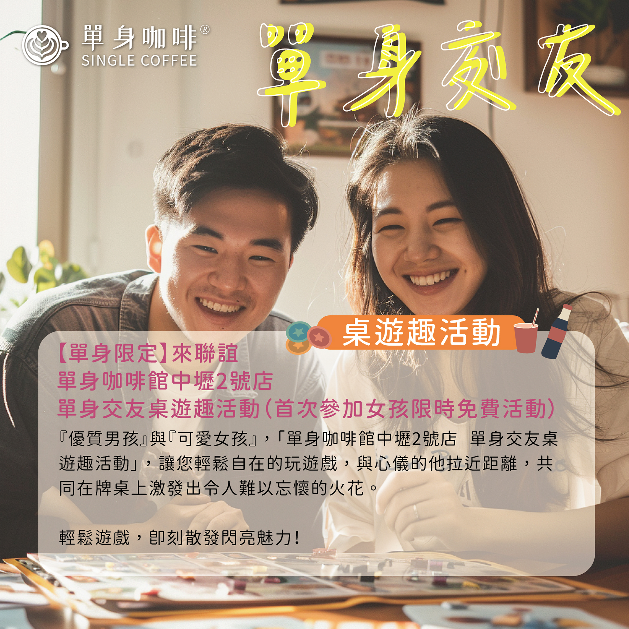 單身咖啡館中壢店🎲單身交友桌遊趣活動(首次參加女孩限時免費活動)
