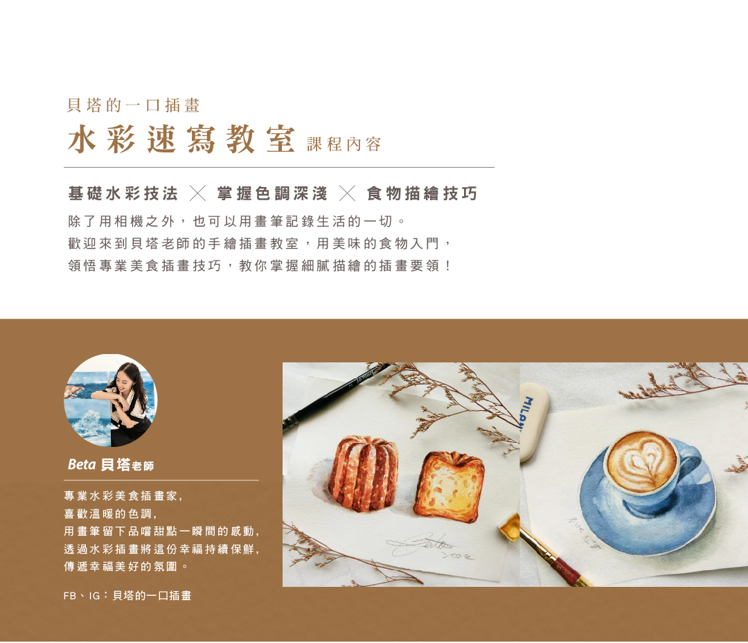【台中市政店】貝塔的一口插畫-水彩速寫教室-咖啡時光 2025.02