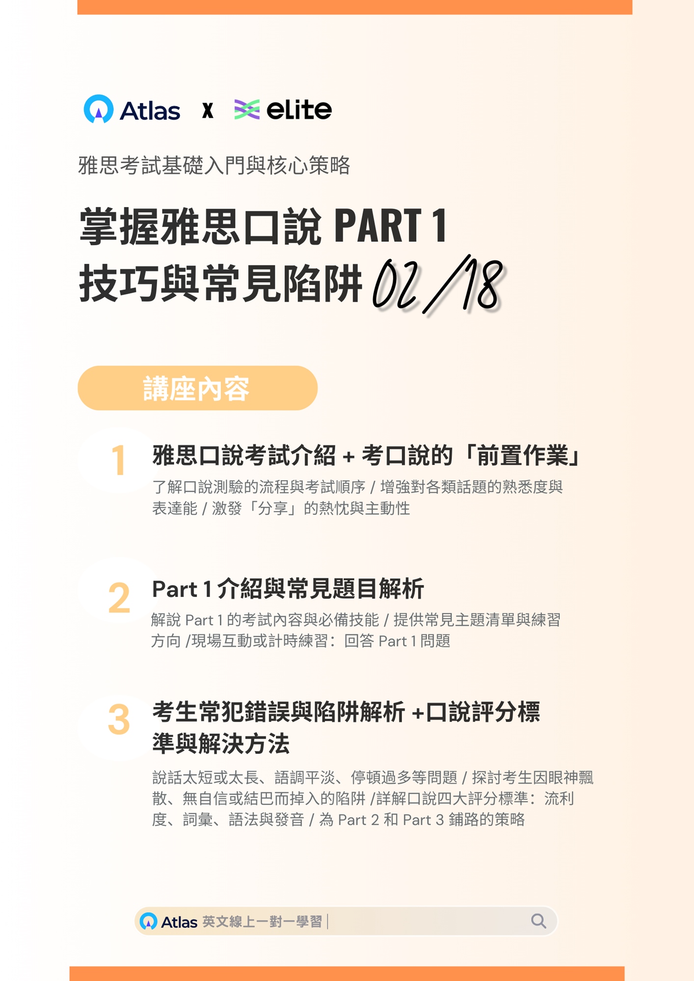 【第一場次】掌握 IELTS 口說 Part 1:技巧與常見陷阱
